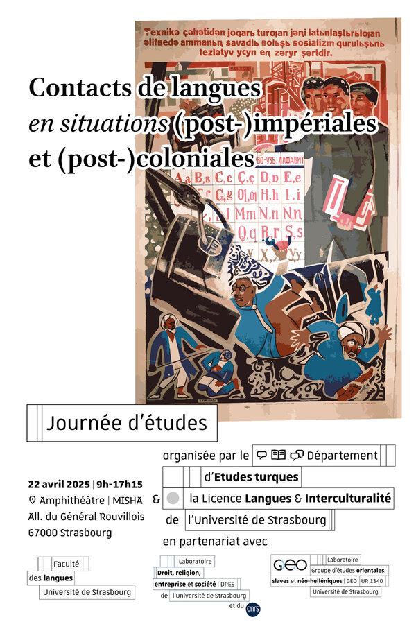 Organisée dans le cadre du développement du pôle interculturalité de la Faculté des Langues, avec le soutien du Département d’Études turques, de la Licence langues et interculturalité, ainsi que des laboratoires DRES (UMR 7354) et GEO (UR 1340), cette journée sera, nous l'espérons, la première d'une…